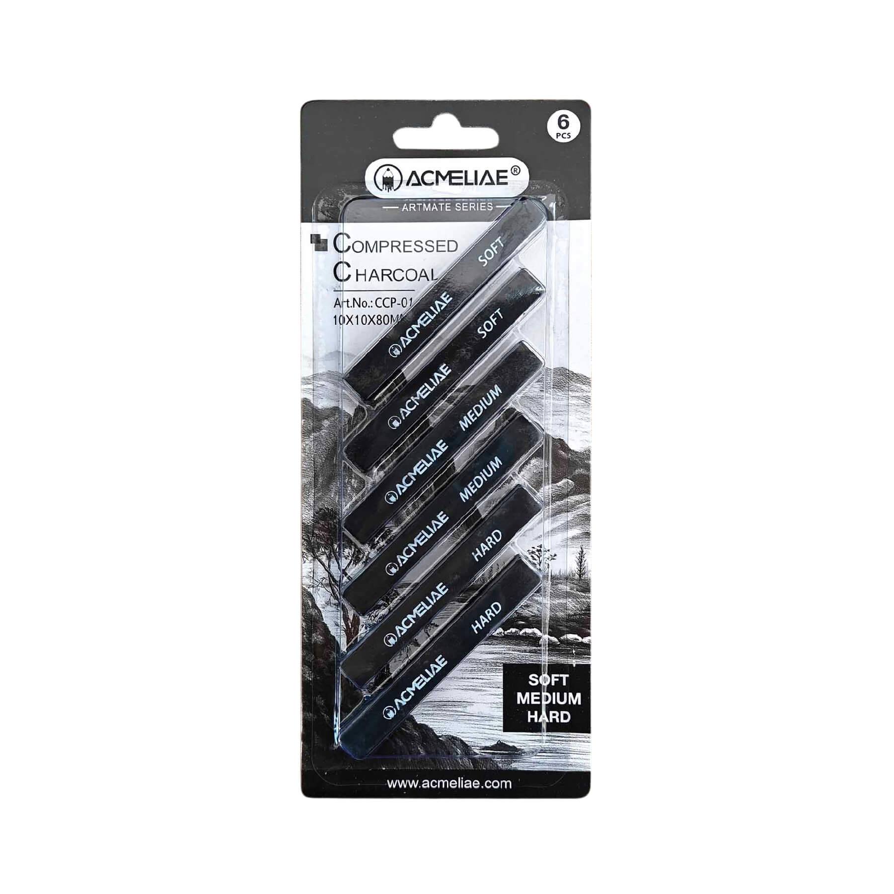 The Acmeliae CCP-01 Compressed Charcoal Set offers a versatile range of tonal control for artists, illustrators, and students. With six sticks—two each in soft, medium, and hard grades—this set is ideal for sketching, shading, and adding dramatic depth to your work.