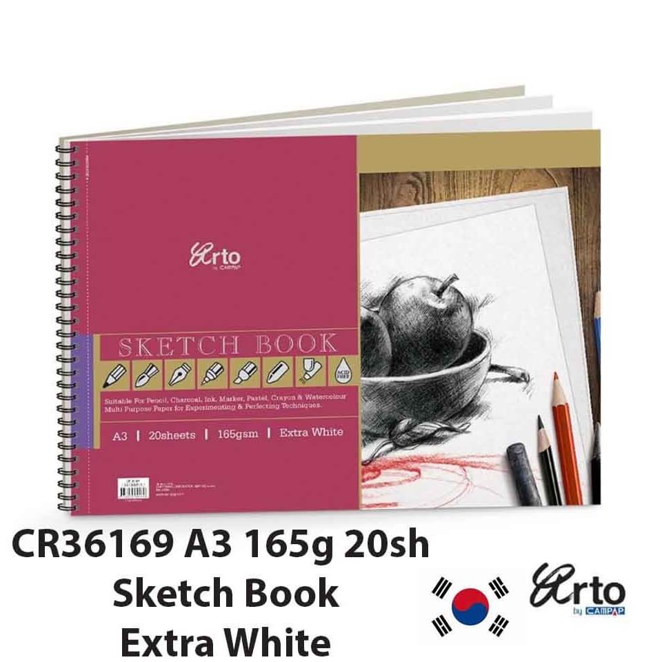Arto Professional Sketch Pad 165 gsm extra white is a high-quality sketch pad designed for artists and students who require a durable and versatile surface for various dry and wet media. This pad features 165 gsm extra white paper sourced from Korea, ensuring a smooth and bright surface that enhances the vibrancy of your artwork. Manufactured in Malaysia by Arto by Campap, the pad is acid-free, making it suitable for archival purposes and preventing yellowing over time. It comes in both A3 and A4 sizes, with 20 sheets per pad, and is ideal for use with pencil, charcoal, ink, markers, pastels, crayons, and even light watercolor applications. Content: 20 sheets