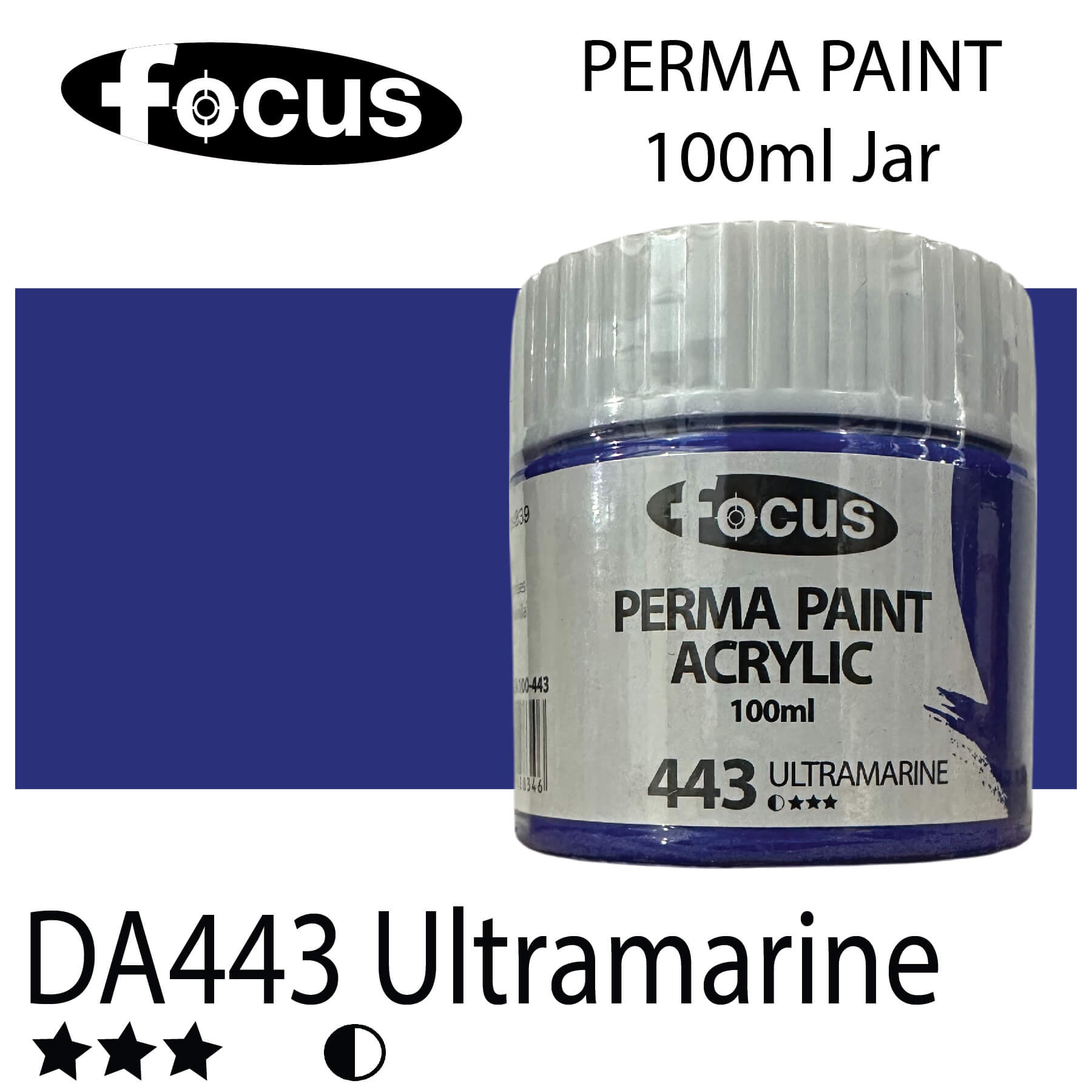 Focus Perma Paint in a 100ml wide-mouth jar offers easy access to rich, buttery acrylic paint—ideal for brushes, palette knives, and scoop tools. Formulated with high-quality, lightfast pigments, it ensures brilliant, fade-resistant color that can last over 50 years under museum conditions. Its smooth consistency is perfect for everyday painting and impasto techniques. Designed for both portrait and landscape work, this durable paint is a reliable choice for students and professional artists alike.