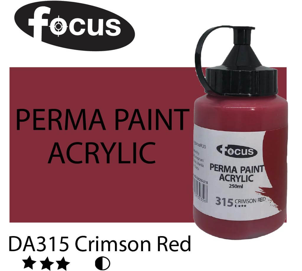 Focus Perma Paint in a 250ml squeeze jar offers both generous volume and mess-free dispensing, making it ideal for studio work and large-scale projects. Formulated with buttery, lightfast pigments, this professional-grade acrylic paint provides brilliant, fade-resistant color that lasts over 50 years under museum conditions. The squeezable jar allows controlled application with minimal waste—perfect for artists who value efficiency and performance. Great for impasto techniques, portrait work, and landscapes.