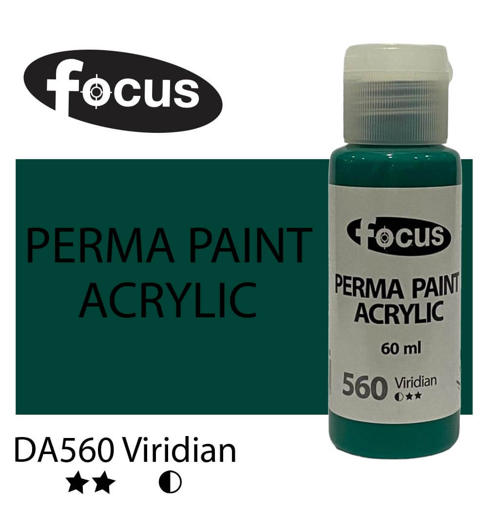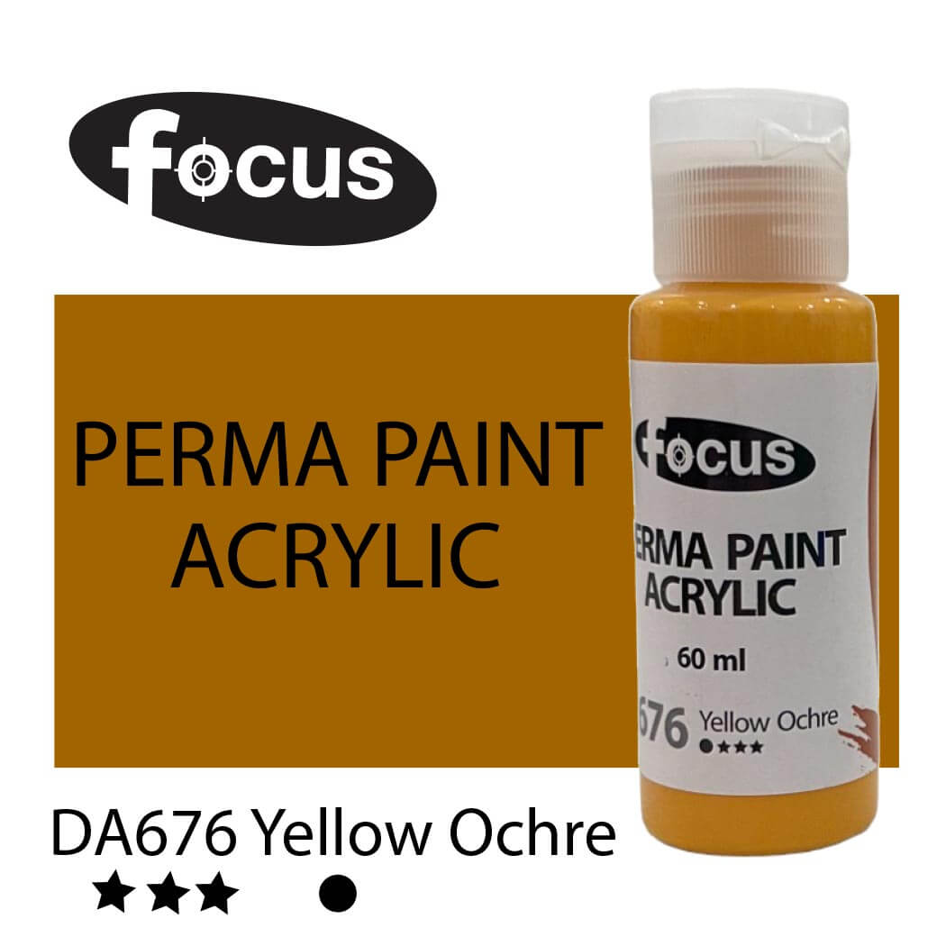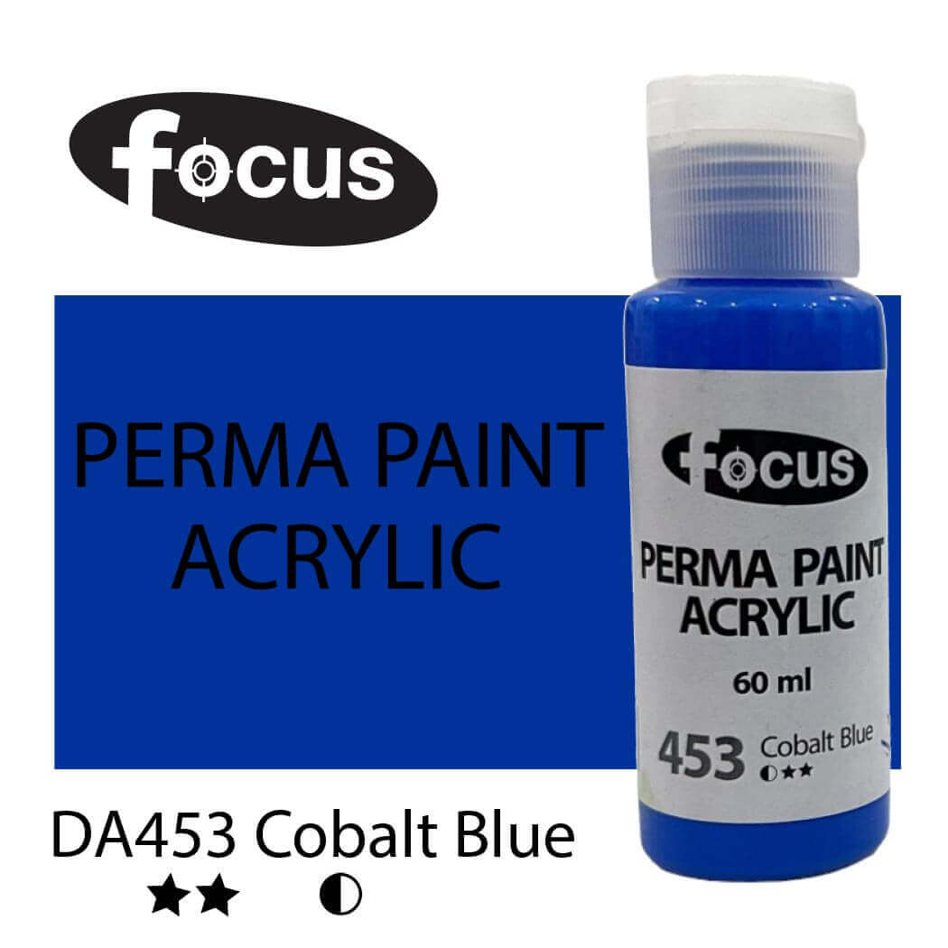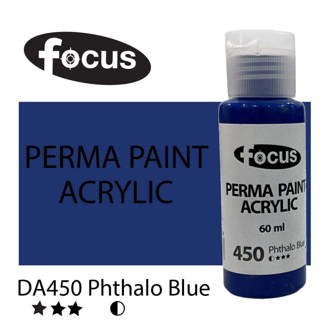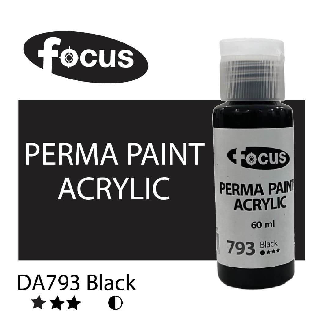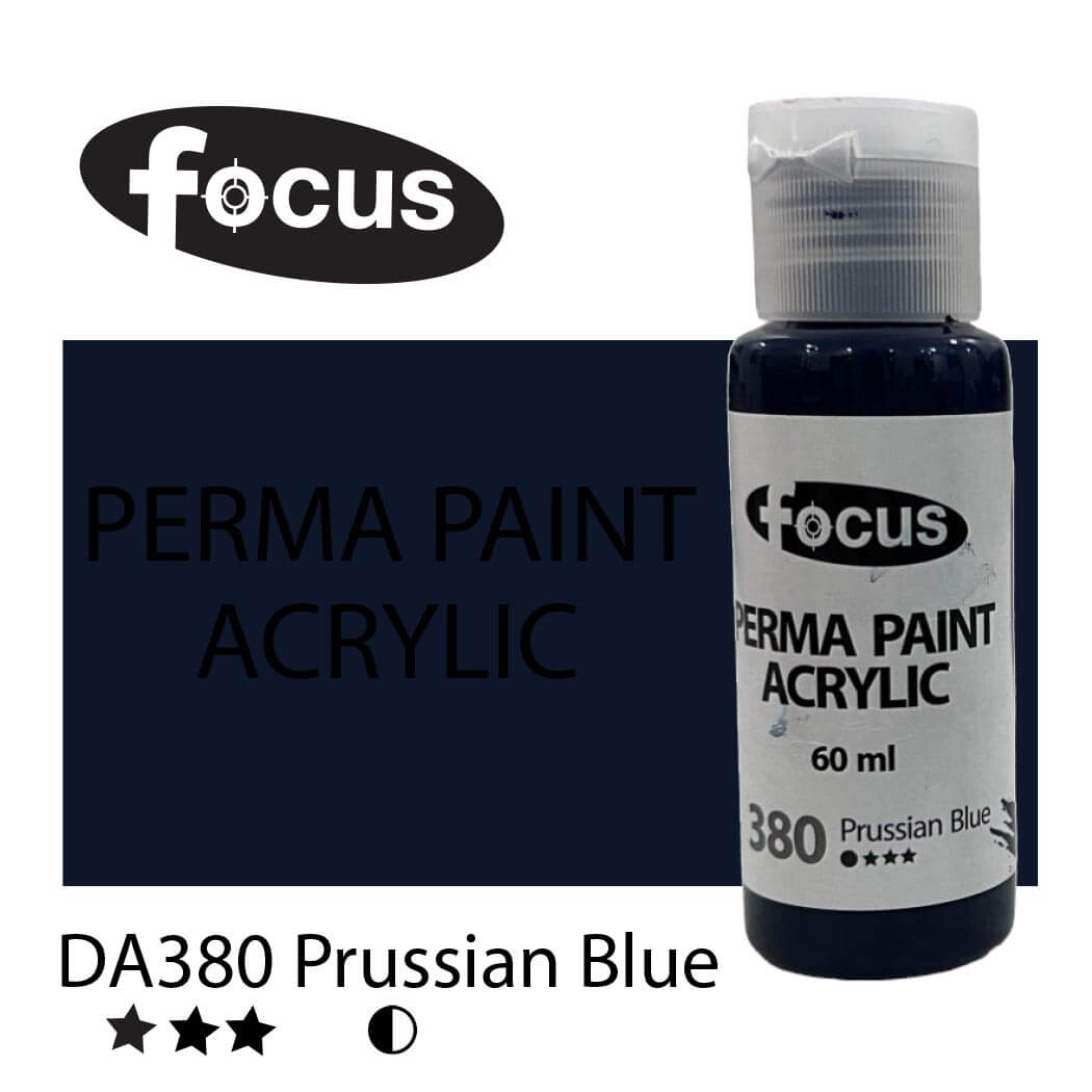 Focus Perma Paint in a 60ml bottle is perfect for detailed work, color testing, and compact painting kits. Formulated with buttery, lightfast pigments, it offers vibrant, fade-resistant color that lasts over 50 years under museum conditions. The easy-squeeze bottle allows for precise control and minimal waste, making it ideal for students, hobbyists, and professionals working on smaller canvases or intricate designs. Suitable for acrylic painting, impasto techniques, portraits, and landscapes.
