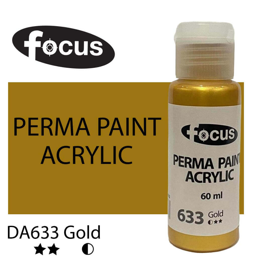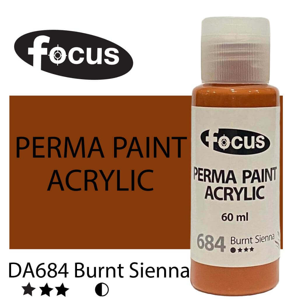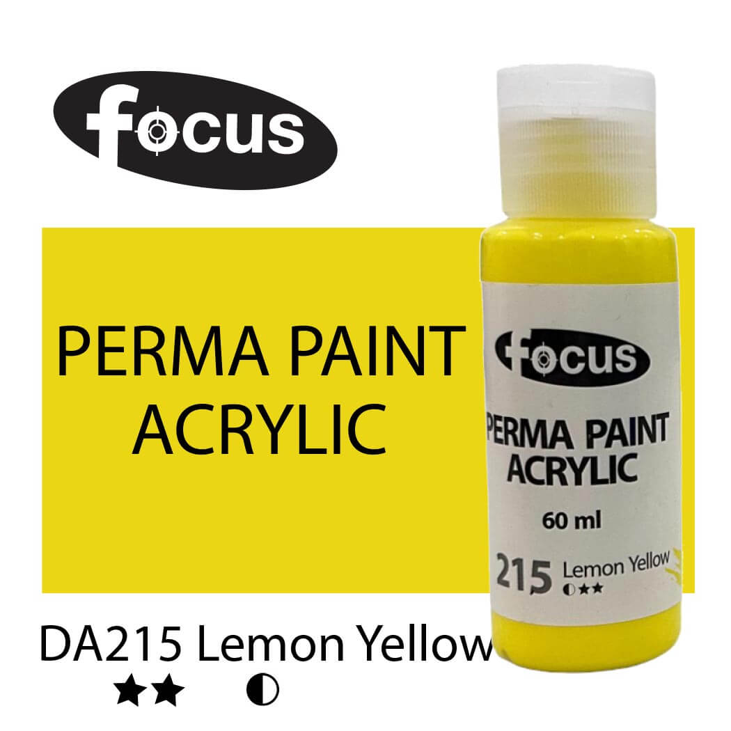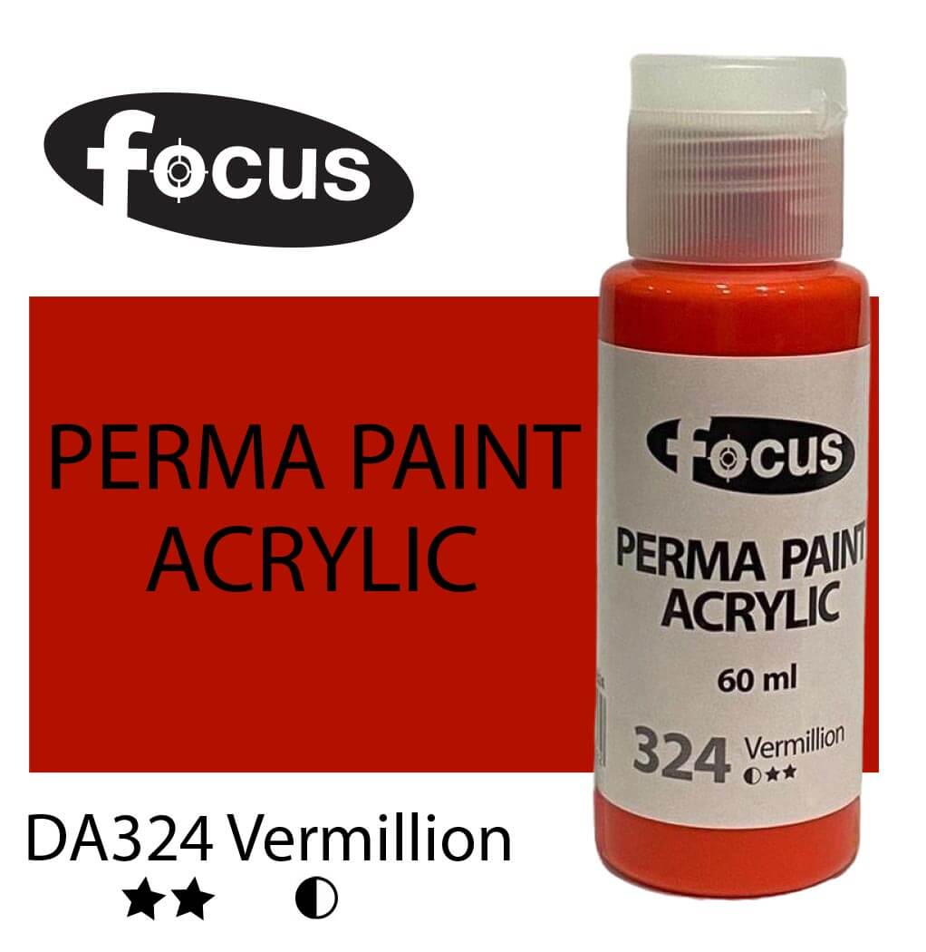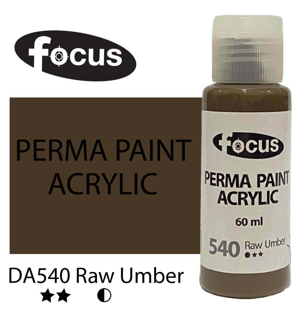 Focus Perma Paint in a 60ml bottle is perfect for detailed work, color testing, and compact painting kits. Formulated with buttery, lightfast pigments, it offers vibrant, fade-resistant color that lasts over 50 years under museum conditions. The easy-squeeze bottle allows for precise control and minimal waste, making it ideal for students, hobbyists, and professionals working on smaller canvases or intricate designs. Suitable for acrylic painting, impasto techniques, portraits, and landscapes.