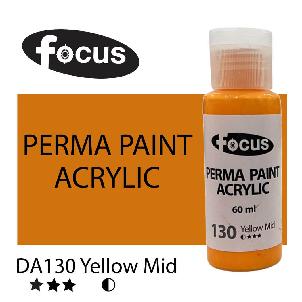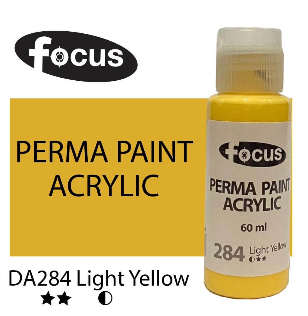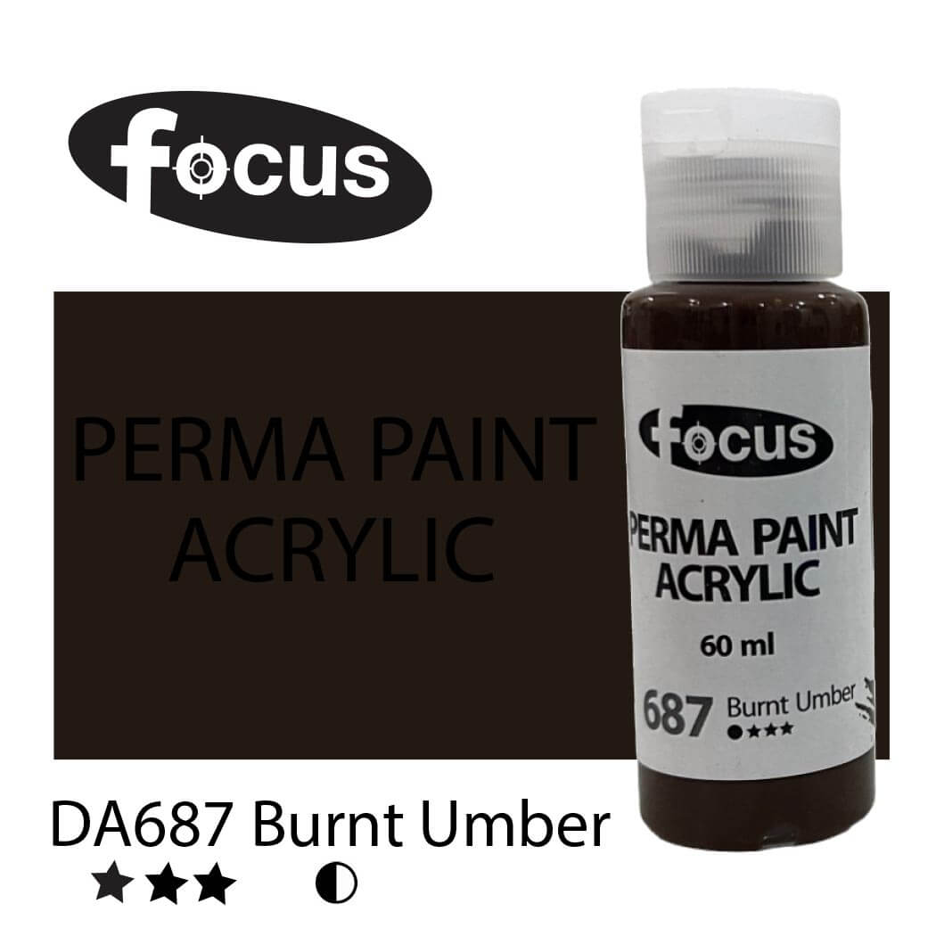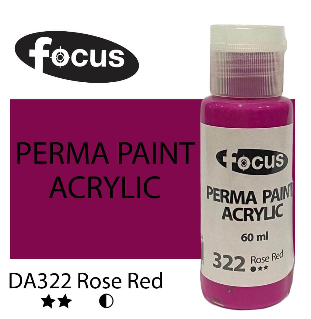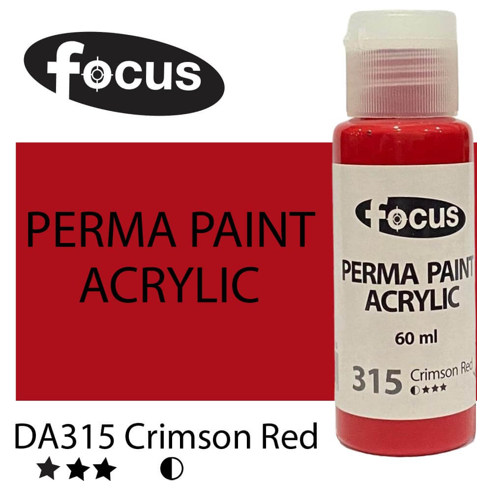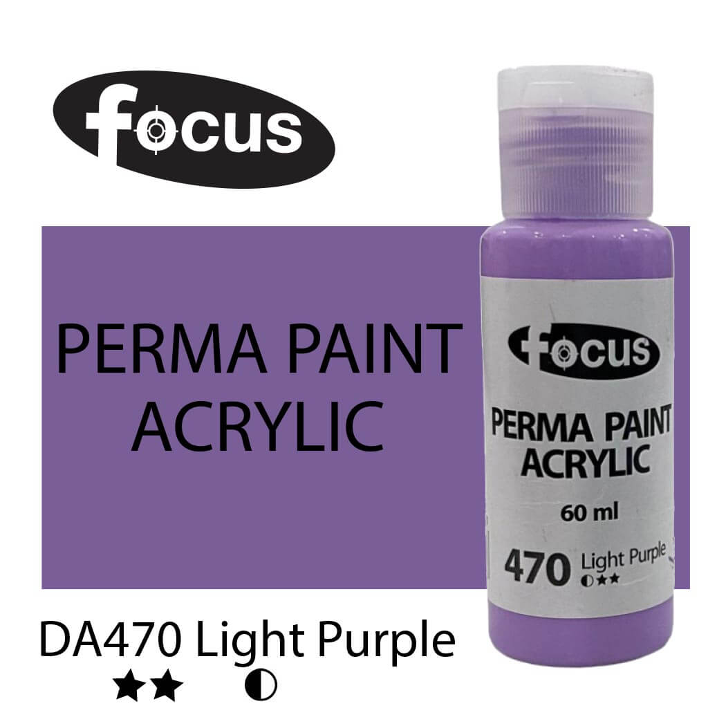 Focus Perma Paint in a 60ml bottle is perfect for detailed work, color testing, and compact painting kits. Formulated with buttery, lightfast pigments, it offers vibrant, fade-resistant color that lasts over 50 years under museum conditions. The easy-squeeze bottle allows for precise control and minimal waste, making it ideal for students, hobbyists, and professionals working on smaller canvases or intricate designs. Suitable for acrylic painting, impasto techniques, portraits, and landscapes.