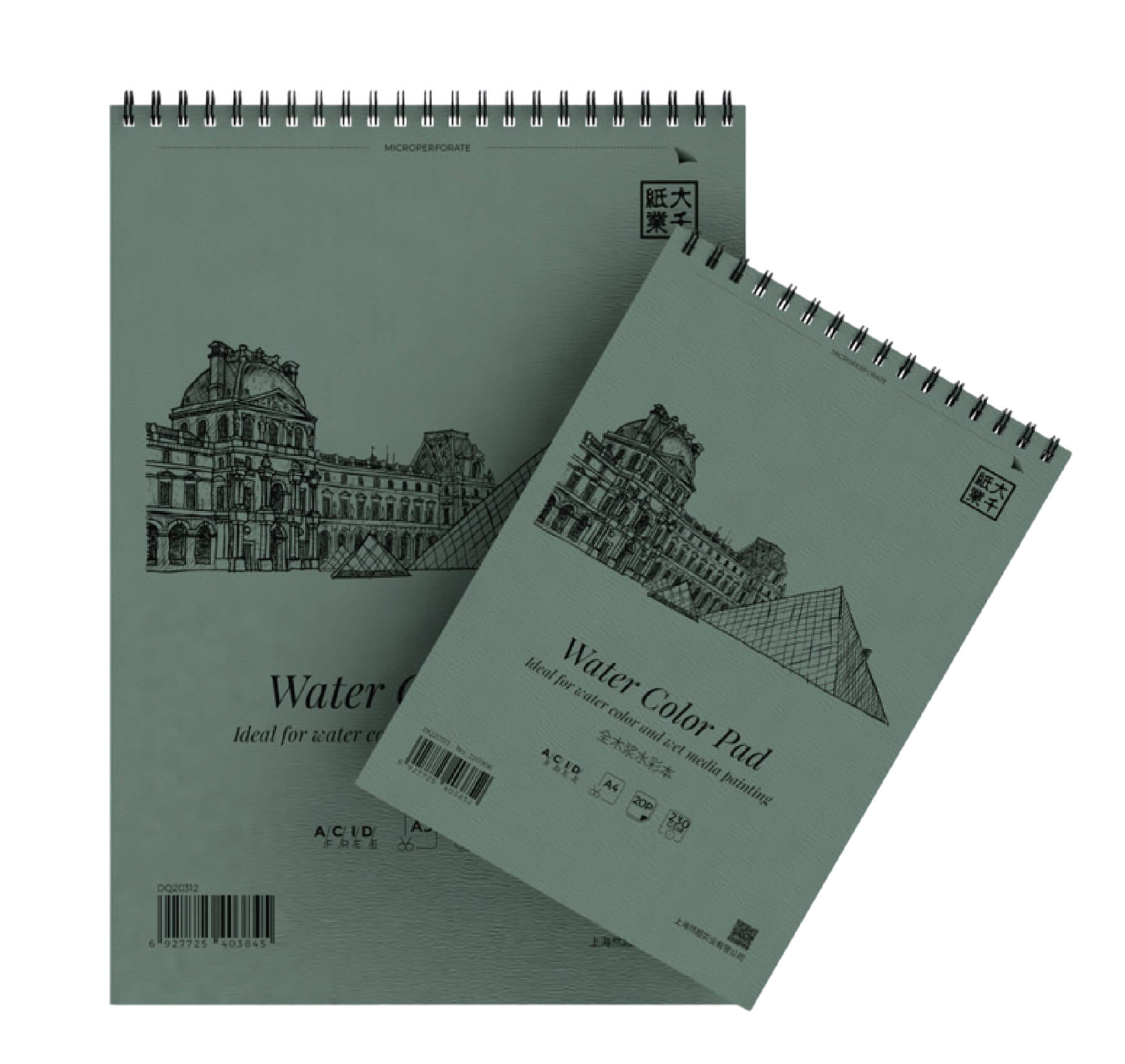 Unleash your creativity with the Daqian Watercolor Book, featuring a louvre-inspired outer cover and high-quality 230 gsm cold-press watercolor paper in a soothing warm white tone. Designed as a spiral-bound notebook, it offers 20 sheets of artist-grade cold-press paper—perfect for richly textured watercolor washes, mixed media techniques, and detailed brushwork. Available in both A4 and A3 sizes to suit your creative needs.